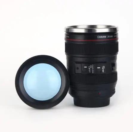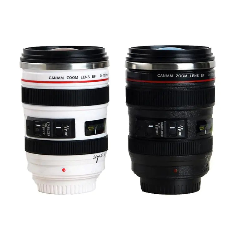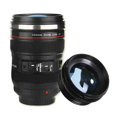 Mantenga sus bebidas calientes como un fotógrafo profesional con nuestra taza térmica con lente de cámara