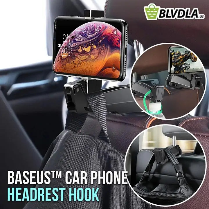 ¡Manténgase organizado, conectado y seguro con el gancho para reposacabezas del teléfono para automóvil Baseus!