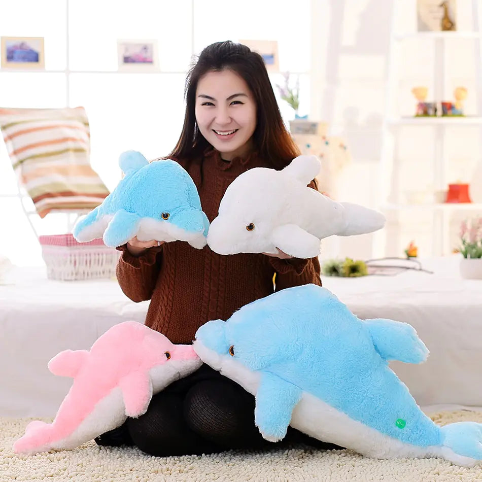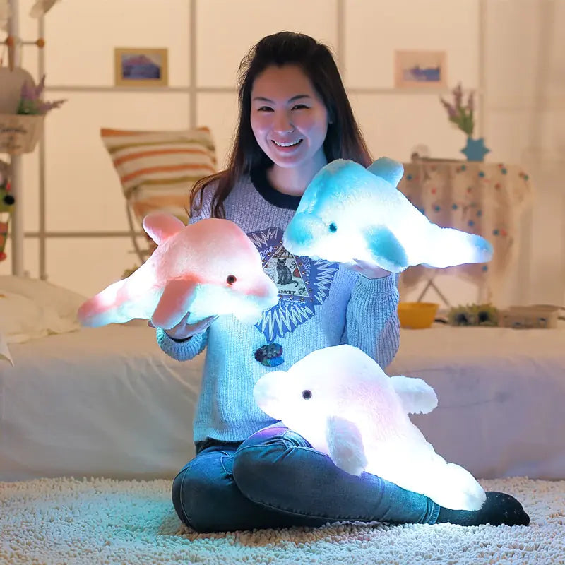 ¡Ilumine la imaginación de su hijo con la almohada luminosa creativa y luminosa del muñeco de delfín de peluche de 45 cm! Este encantador animal de juguete con luz LED es más que un simple compañero de peluche: es un regalo mágico que brindará alegría infinita a los niños.