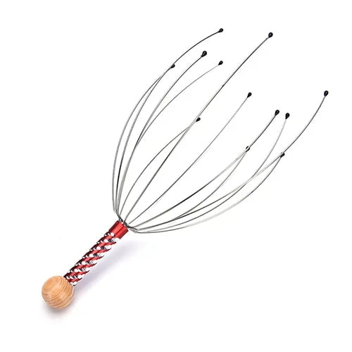 Disfrute de la relajación y el rejuvenecimiento con nuestro masajeador de cuero cabelludo de acero inoxidable. Elaborado con un diseño en forma de pulpo con dedos flexibles especiales, este masajeador manual estimula suavemente millones de terminaciones nerviosas en el cuero cabelludo.