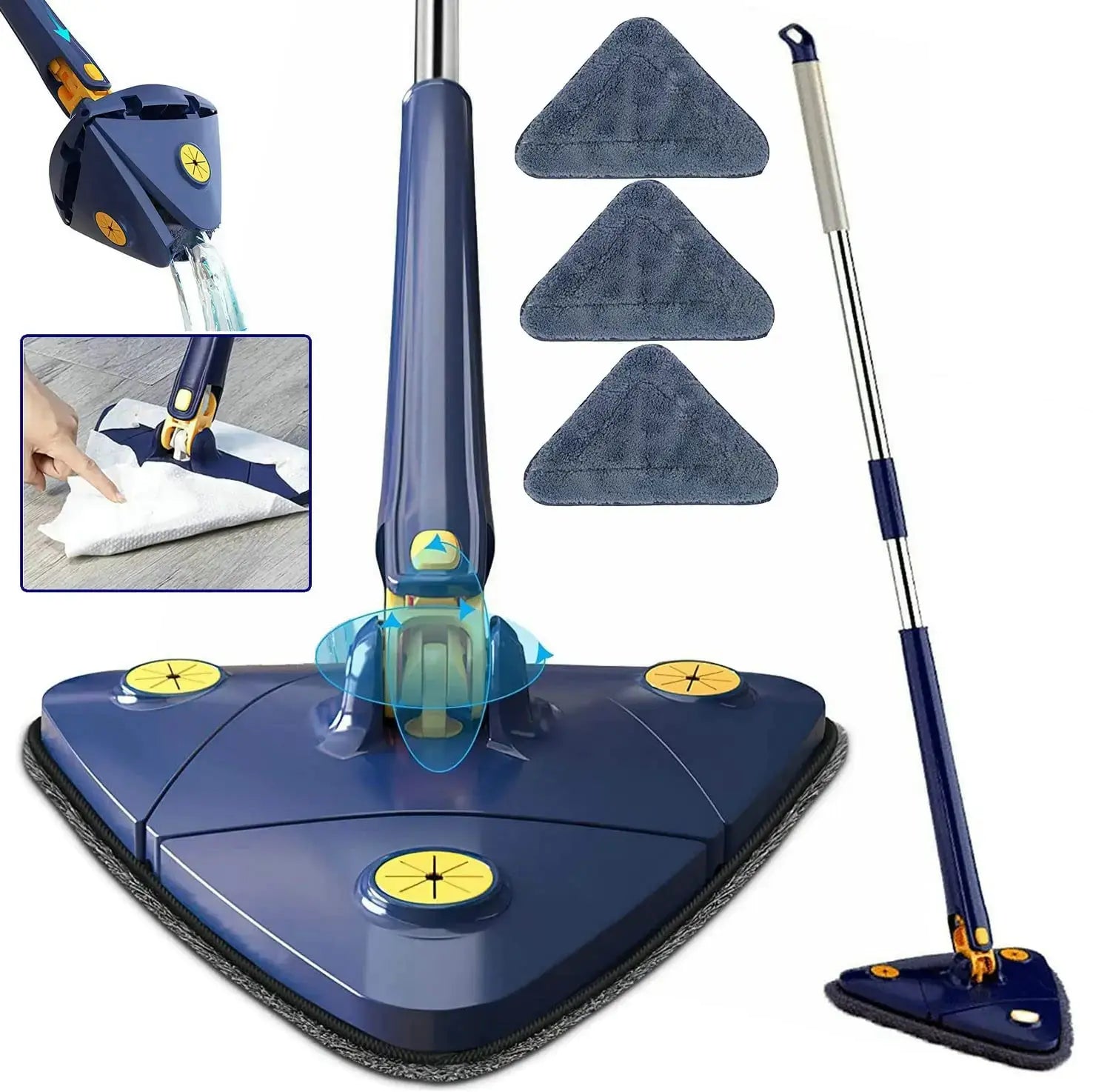 Experimente lo último en comodidad de limpieza con nuestro trapeador triangular con escurridor, diseñado para dejar pisos impecables con el mínimo esfuerzo. Disfrute de la brillantez de la limpieza en un solo paso y mantenga sus pisos con el mejor aspecto todos los días.
