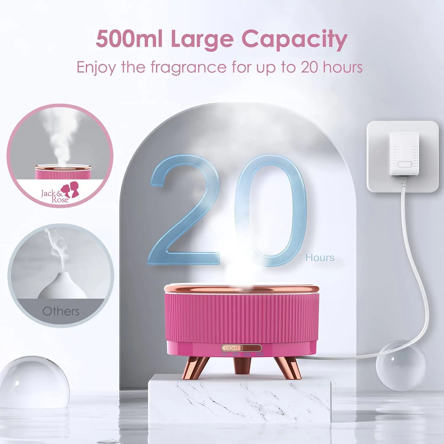 - Capacidad extendida: Con un generoso tanque de 500 ml, este difusor proporciona una niebla duradera, brindando frescura y fragancia continuas sin recargas frecuentes.