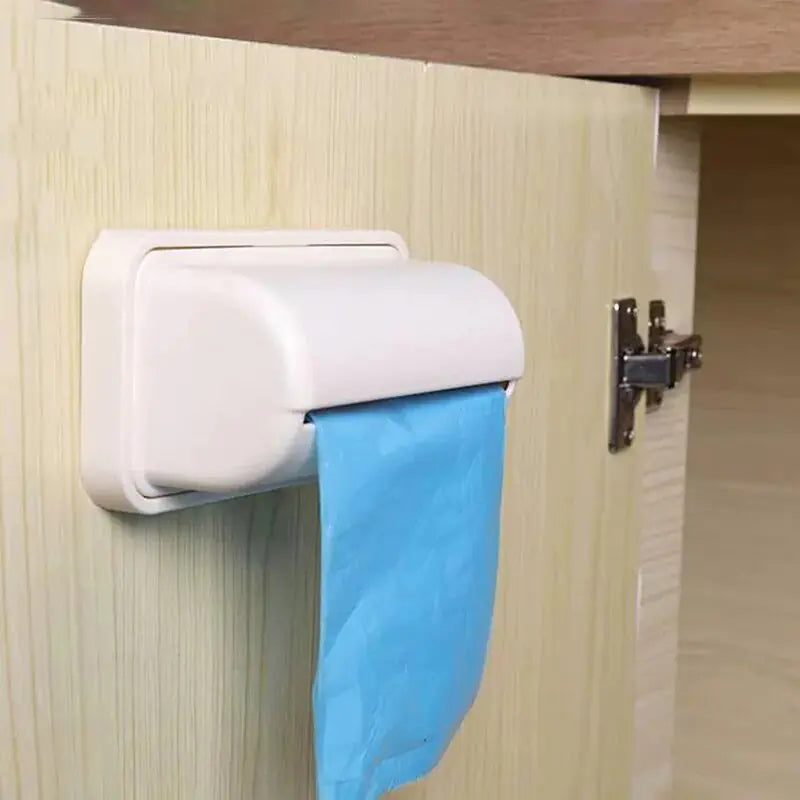 1. Caja de almacenamiento de bolsas de plástico sin perforación, autoadhesiva, fácil de instalar.