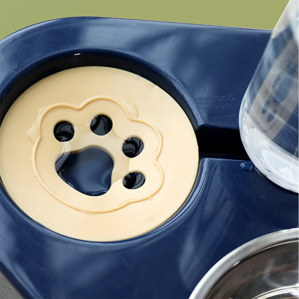 This drinking bowl is designed for pets and crafted from a combination of PP (Polypropylene), PET (Polyethylene Terephthalate), and stainless steel materials. The small size measures 24.5 x 24.5 x 29.5 cm, with a bowl size of 11 x 3 cm for small pets.