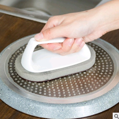 The Emery Sponge Cleaning Brush is a versatile tool designed for kitchen decontamination and rust removal. This magic brush is perfect for cleaning pots, bowls, and various kitchen utensils, making it an essential addition to your cleaning supplies.
