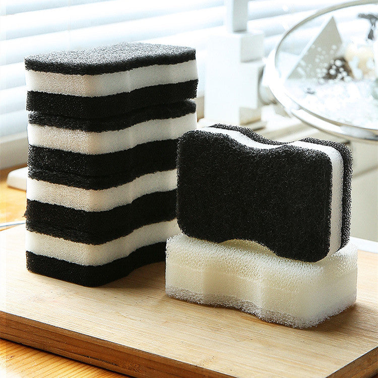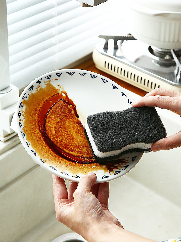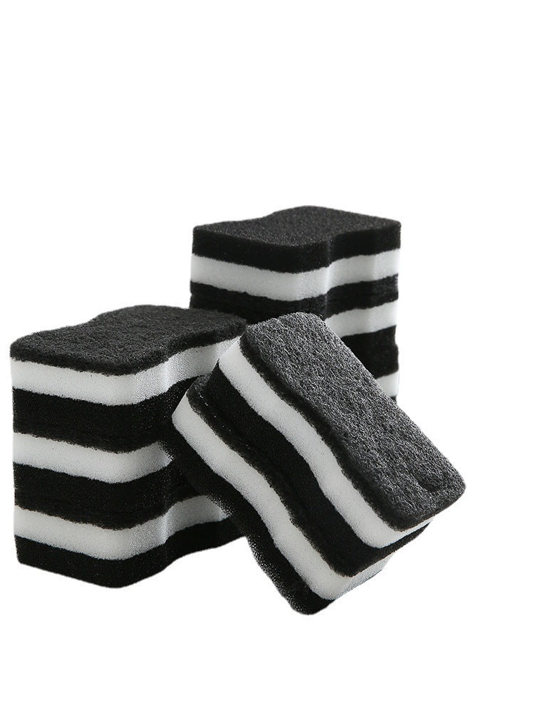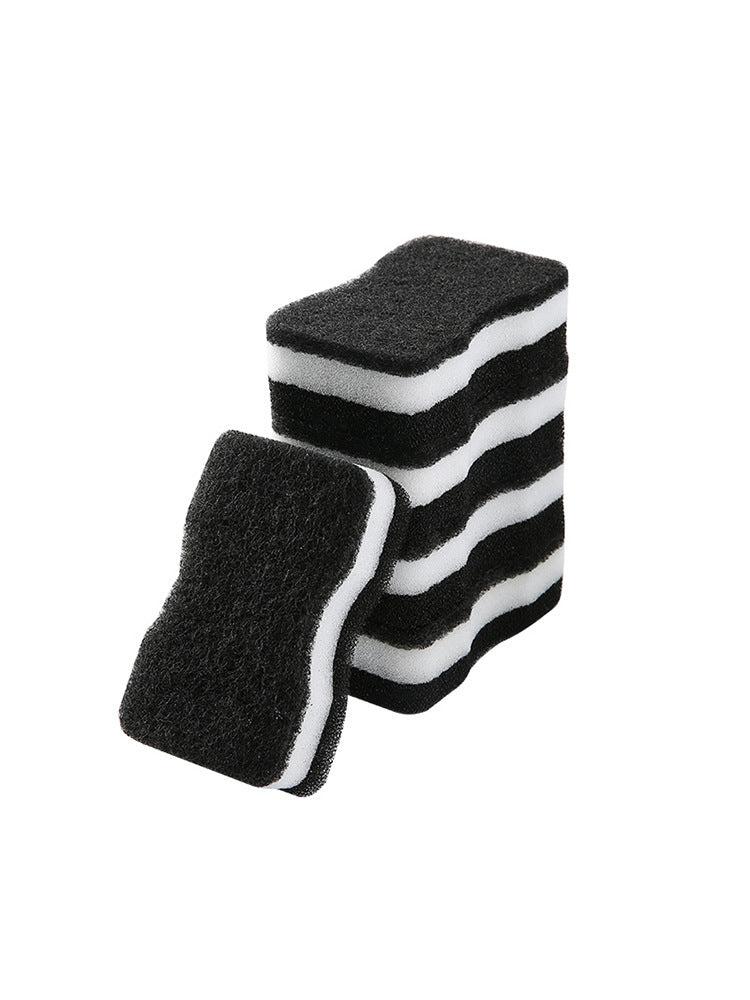This product consists of five carbon black sponge brushes designed for cleaning pots and bowls. Made from durable sponge material, these brushes are ideal for effectively removing dirt and grime from kitchen utensils.