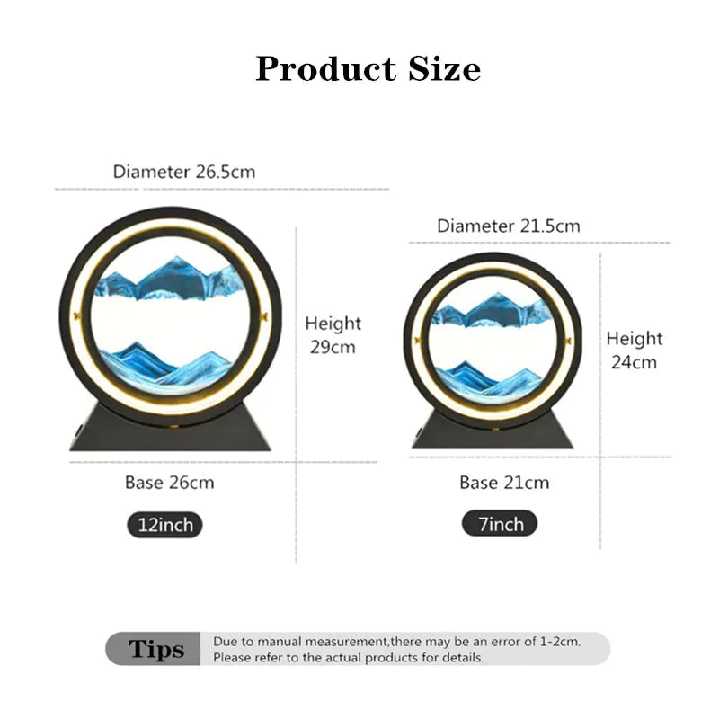 Soothing Visual Display: Watch as sand flows gracefully, creating a dynamic spectacle that soothes the eyes and calms the mind.