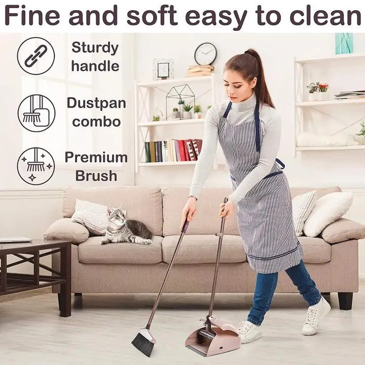 - Versatile Use: Whether you're sweeping up crumbs in the kitchen, pet hair in the living room, or dust bunnies in the hallway, our broom and dustpan set is up to the task. Its wide design and sturdy bristles make it suitable for use on all types of floors and surfaces.