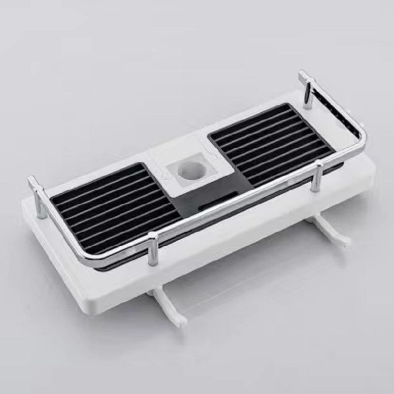 This punch-free shower storage shelf is designed for easy installation and does not require drilling or hardware that could damage bathroom surfaces. Made from durable ABS plastic and finished with electroplating and painting, it is available in white and black. The shelf is both functional and aesthetically pleasing, capable of supporting up to 3 kilograms of bathroom items. Its sturdy construction and sleek design make it a practical addition to any modern bathroom.